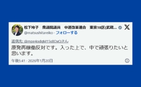 立民・松下玲子議員「原発再稼働反対」のまま「中道」合流の欺瞞