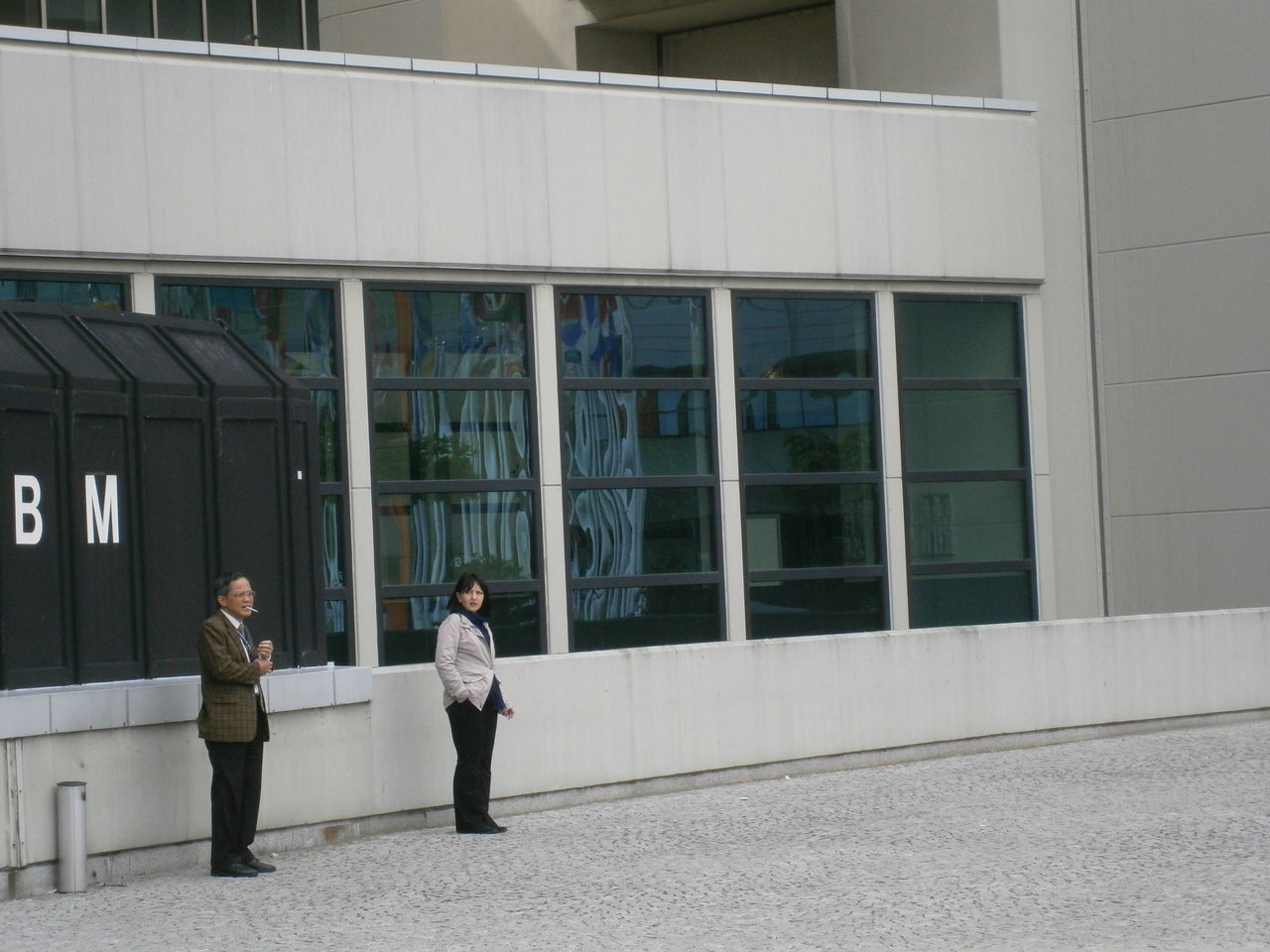 ▲仕事の合間、外で喫煙するIAEA職員たち