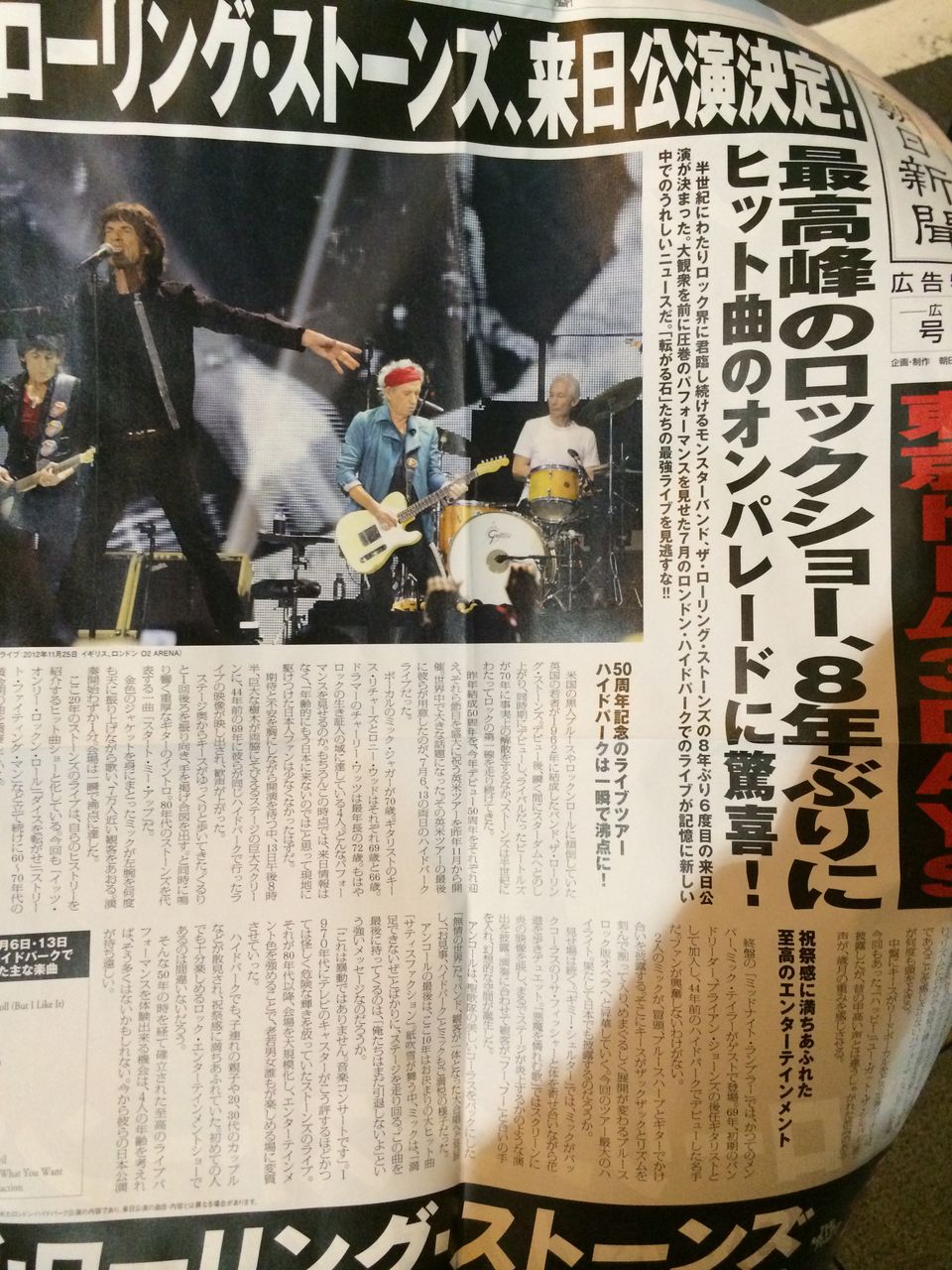 前から噂はされていたが、ついにRolling Stonesの来日が発表された。たまたま出かけた表参道では広告号外まで配られていた。中年の私は喜んで手にとったのだが、若い人はどうだっただろう。