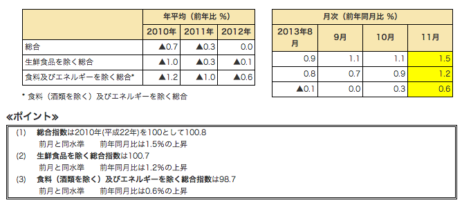 <資料1:平成22年基準 消費者物価指数 全国 平成25年(2013年)11月分>