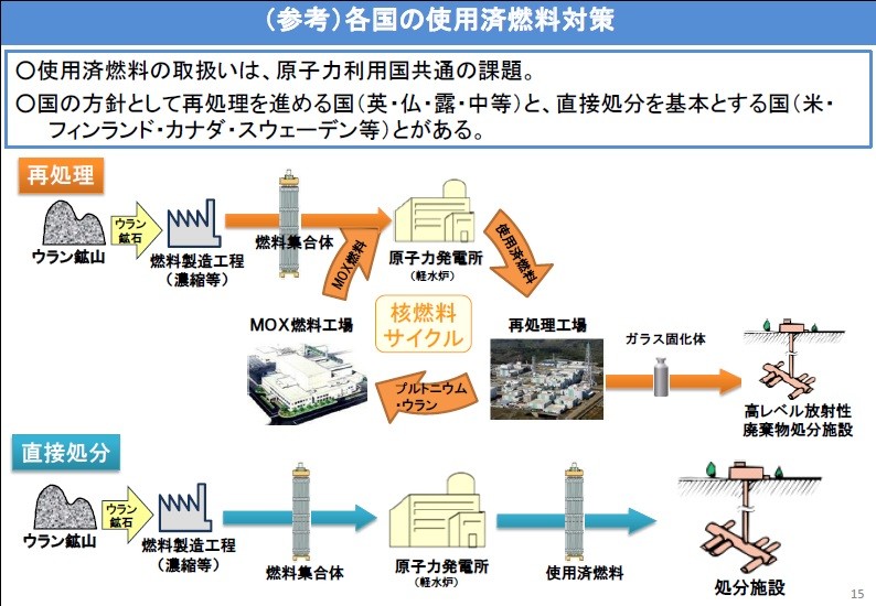 現時点での核燃料サイクルに関する日本政府の方針は、エネルギー基本計画政府原案p41以降に書かれている。そこに書かれているように、『核燃料サイクル政策については、これまでの経緯等も十分に考慮し、関係自治体や国際社会の理解を得つつ、再処理やプルサーマル等を推進するとともに、中長期的な対応の柔軟性を持たせる』ことを今後の基本線としていくことが見込まれる。
