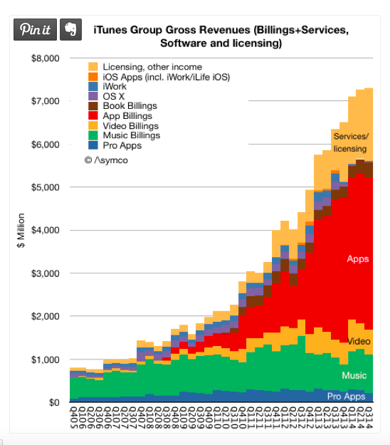 確かに有料音楽配信の売上は伸びてきましたが、一曲ずつ、またアルバムを購入するビジネスをリードしてきたアップルのiTunesの音楽売上はさっぱり成長が止まってしまっています。