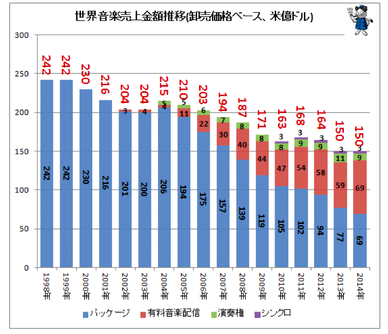 主要国別の音楽売り上げ動向をグラフ化してみる(2015年)(最新) – ガベージニュース