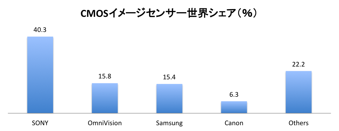 SONYの強みとしている領域は、なんといっても画像センサーとゲームだろうと思いますが、画像センサーは2014年で40.3%のマーケット・シェアを占め、2位以下のオムニビジョン、サムスン、キヤノンを大きく引き離しています。