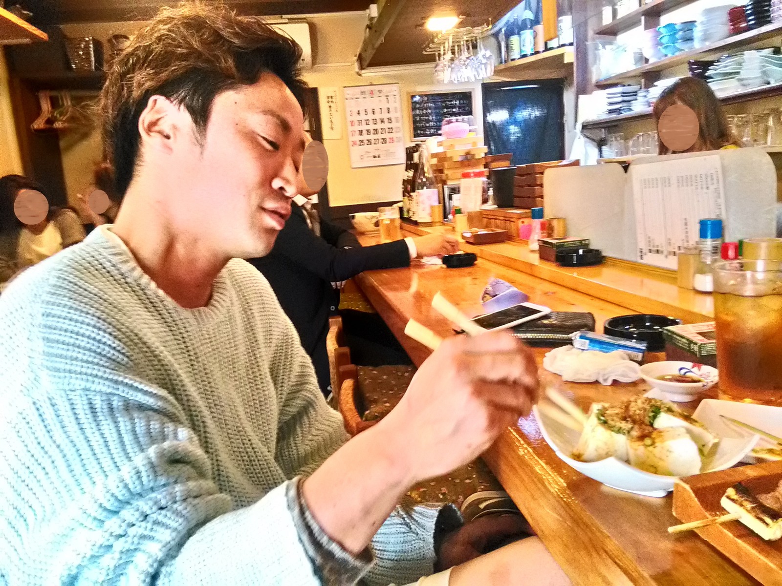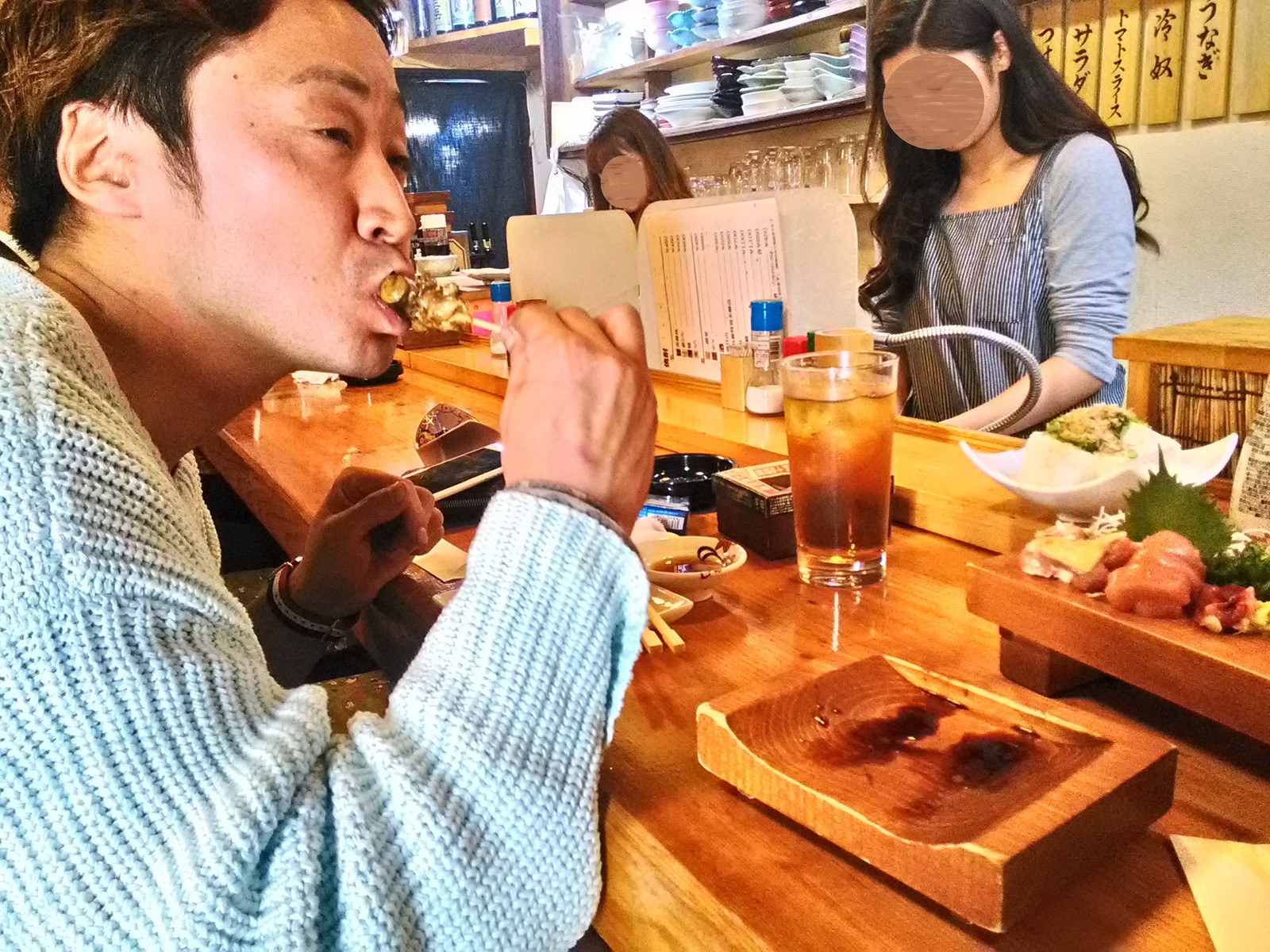 店はアキラが選んだ焼き鳥屋。 少し先に着いたのか、まだアキラはいない様子。 しかし、カウンターには二膳の箸と、2つのお通し。