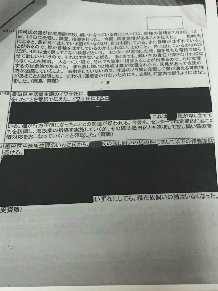 昨年6月19日の登録更新申請直前の「注意指導書」には「猫の飼養頭数を10頭以下とする」とあり、既に頭数・繁殖コントロール出来ていなかったことも情報公開でわかりました。