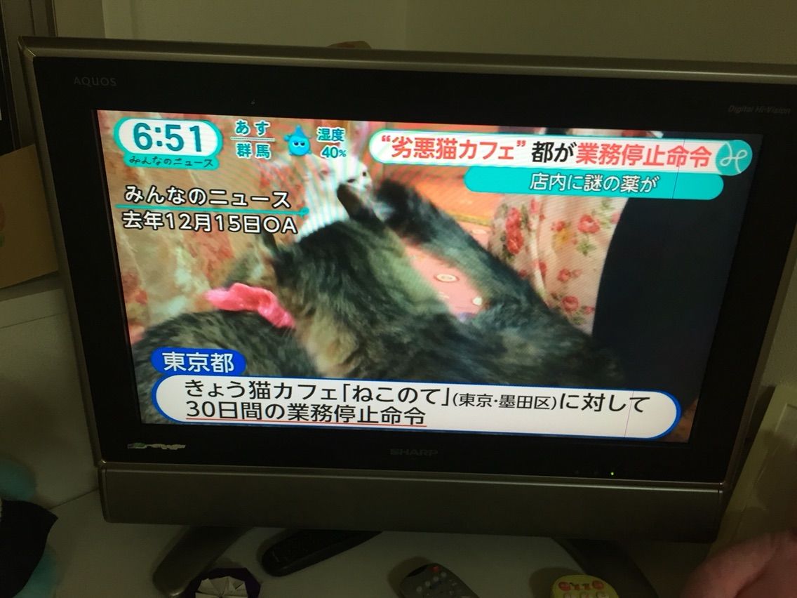2月11日に「ひるおび」のネコノミクス特集でオススメ猫カフェと紹介して、抗議するも放置していたTBSさんも報道してくれましたな( ̄▽ ̄)