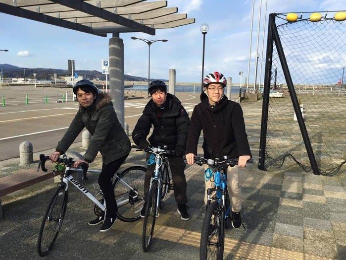 (後続の大学生、右から徳江君、村田君、石井君。個性的で超優秀なお三方)