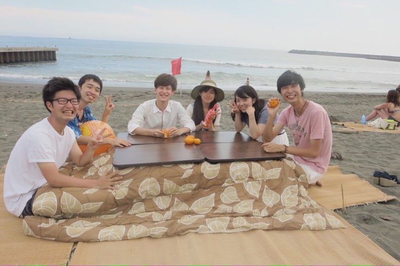 わざわざ海岸に、こたつを置くのがいいですねぇ