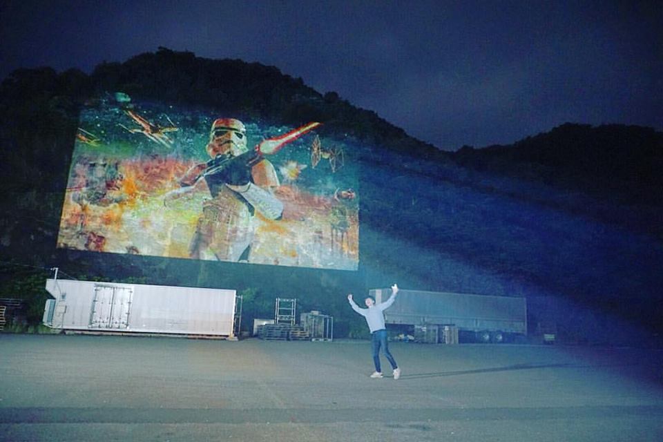 山に巨大な映像が!?プロジェクターで動画を投影、大音量で楽しんでいます。全国を見渡すと、屋外スクリーンは多少ありますが、山に投影するのはおそらく初めてではないでしょうか?