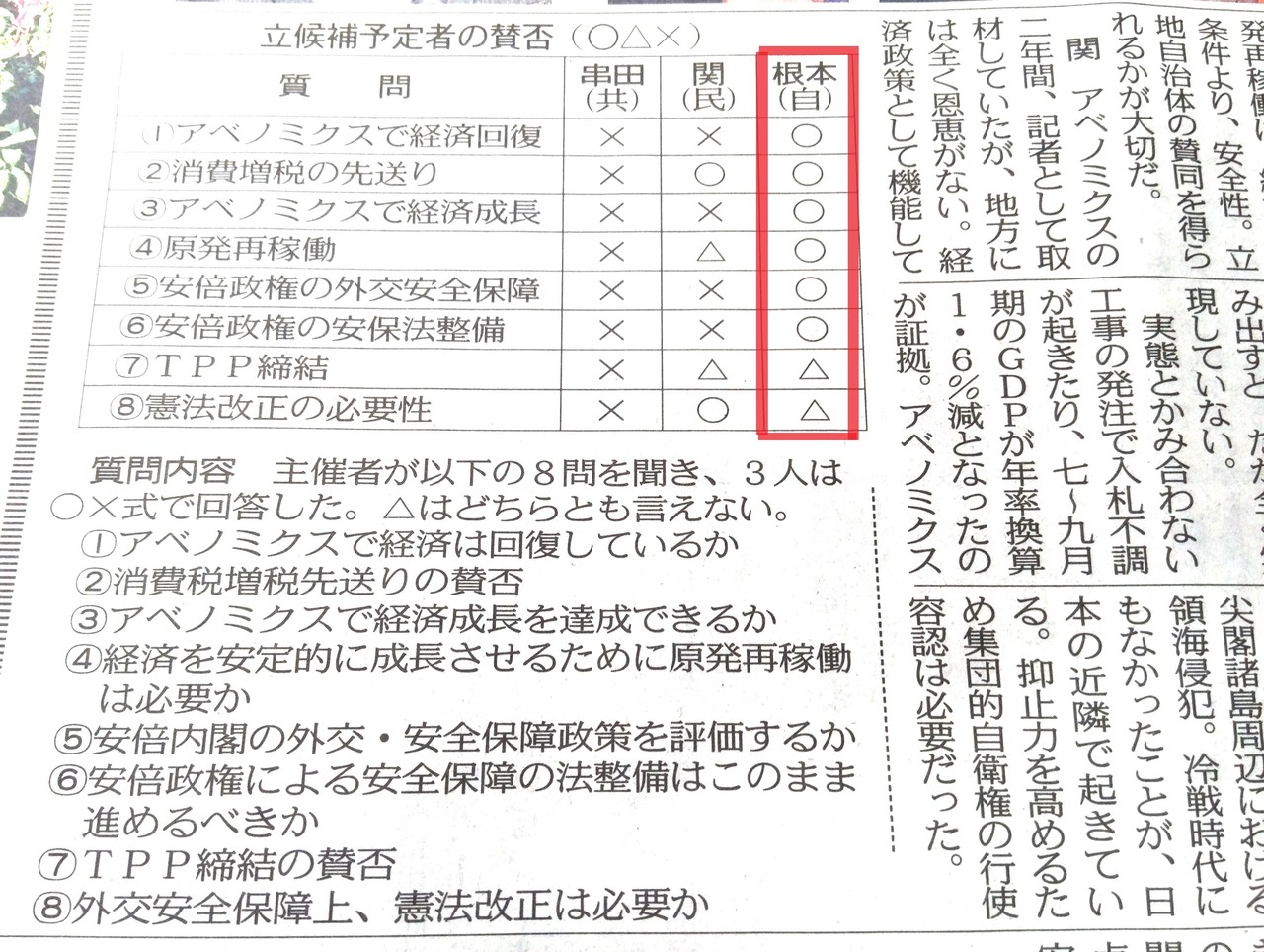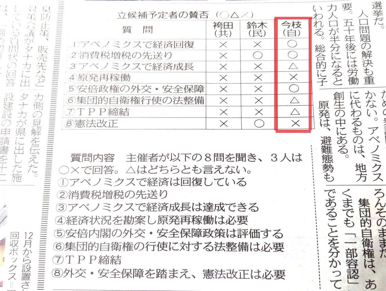 こちらは、2014年11月に開催された衆院選直前の公開討論会の新聞記事です。
