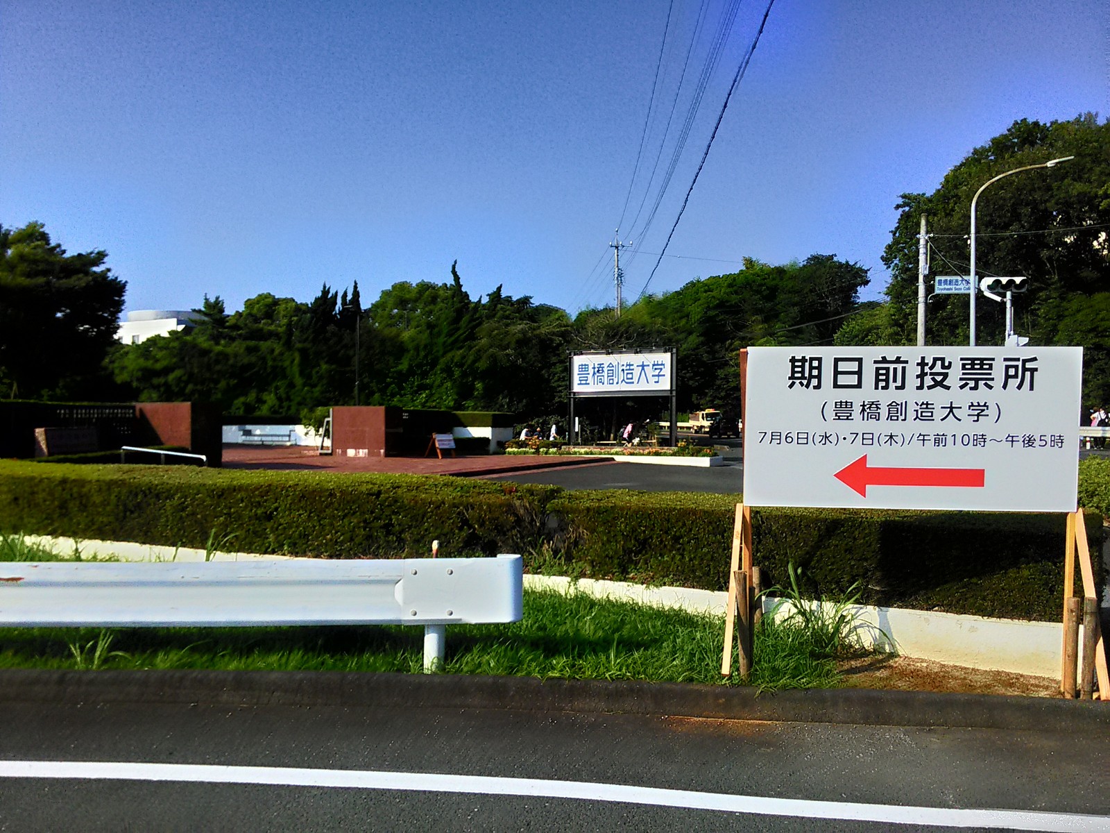 その豊橋創造大学で、豊橋史上初の大学での期日前投票所が、7月6日・7日の2日間限定で設置されたので、行って来ました。