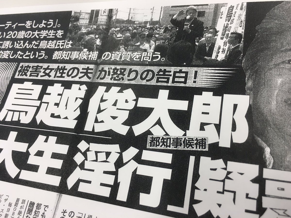 選挙期間中に週刊誌が第三者の証言を基にすっぱ抜き記事をデカデカと載せてきました。