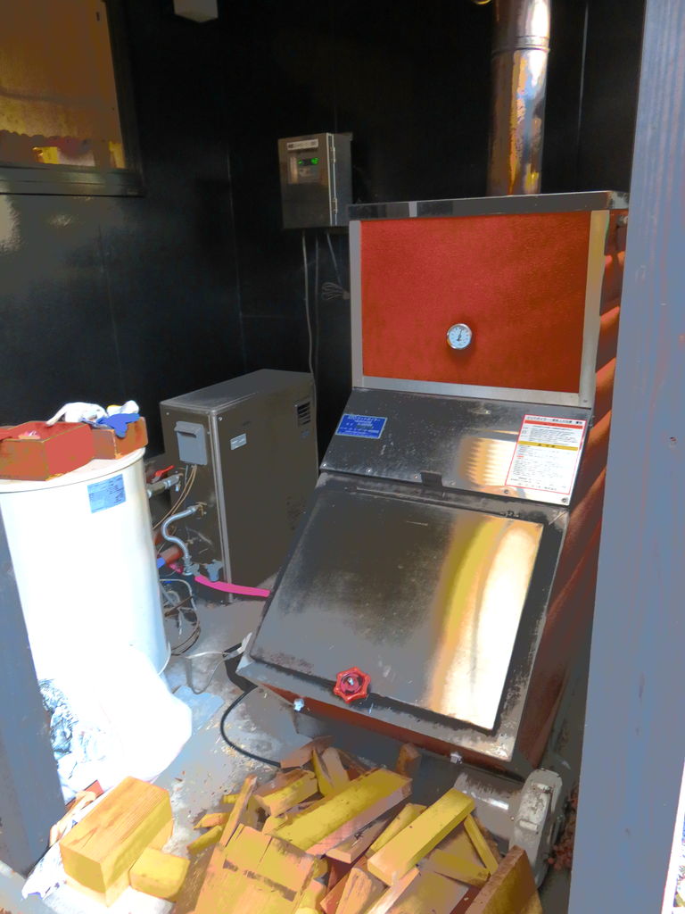もともと林業が盛んな神山町。Cafe on y va(カフェ オニヴァ)では、ウッドボイラーを使って、お店の大部分のエネルギーをまかなっています。薪を持ってくれた人に、コーヒーやディナーを提供しています。