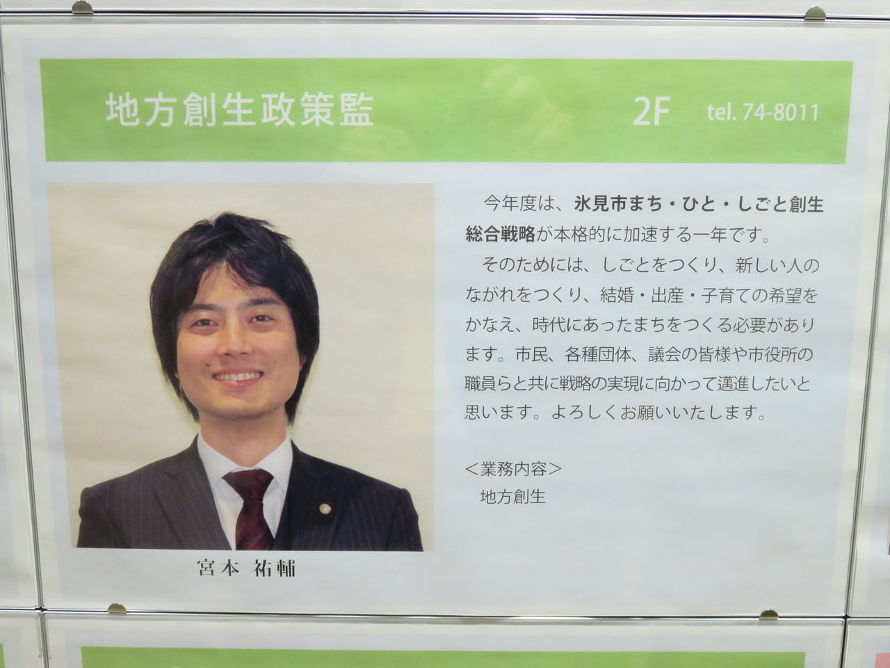 市民の「つぶやきをかたちに」し、廃校になった高校の体育館をリノベーションしたこの市役所の玄関には、とても分かりやすいメッセージが掲げられています。