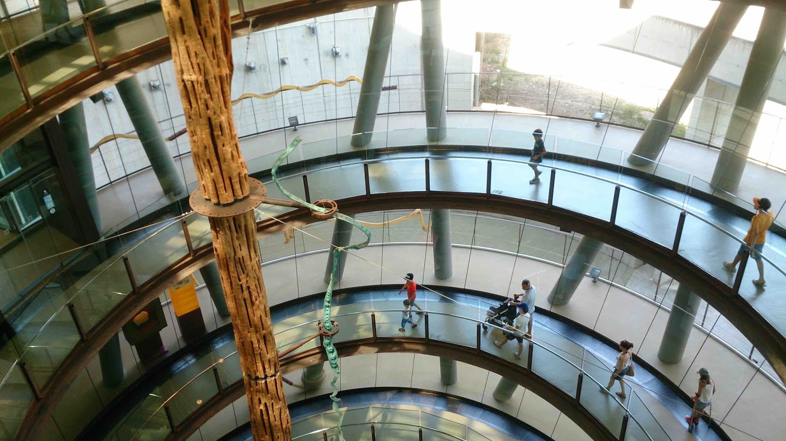 上下30mのらせん階段を降りて、自然と科学の探検をさせるという趣向です。