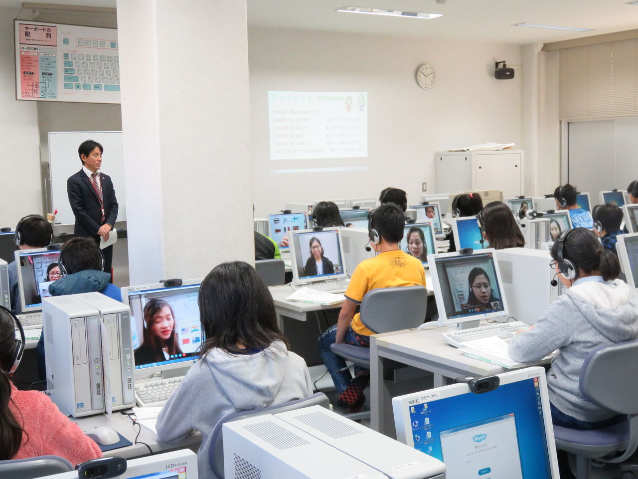 全小学校でオンラインで1対1の英会話を導入しています。1対多の授業では、積極的に話せなかったり、なかなか身につかない生徒も、1対1では自分たちの習熟度に合わせて積極的に話すことができます。