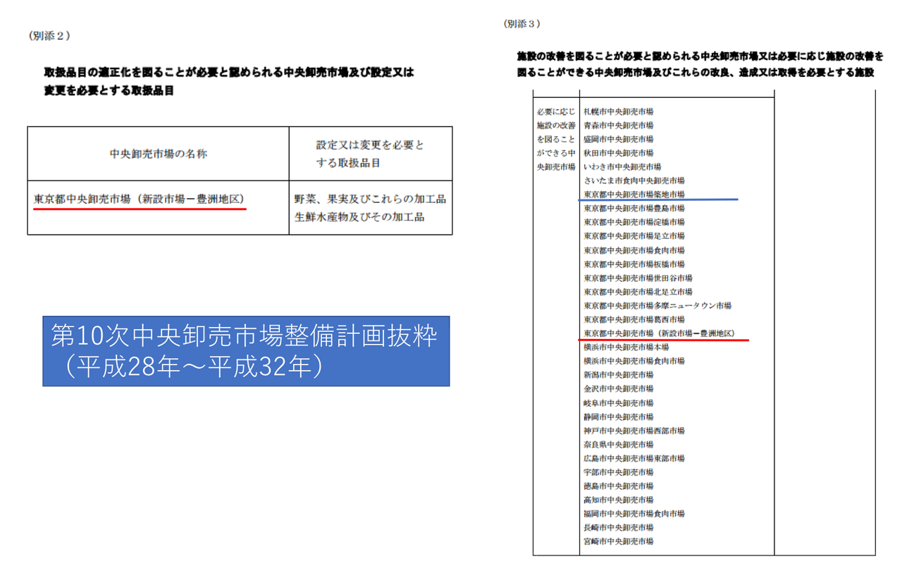 こで重要なことは、農水省は明らかに豊洲新市場の開設、築地市場からの移転、を前提として中央卸売市場整備計画を作っているということです平成28年10月14日の審議会での議事録を見ると担当課長が以下のように述べています。