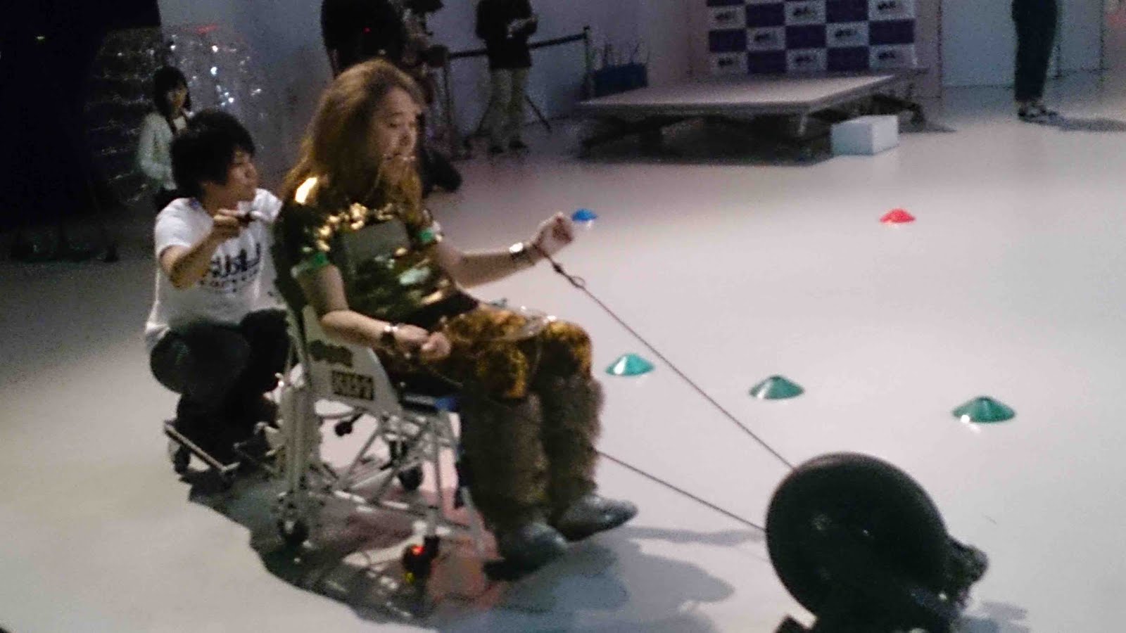 電動アシスト全方向車イスで、ドリフト走行などのテクニックで競い合うレース。小回り、鋭敏な動きができる器用さ、繊細さ、判断力が勝敗を握ります。