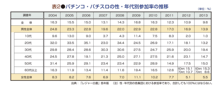 私は優等生よろしく小学校ではどちらかと言えばいじられたりイジメられる側でしたが、赤坂のエスパスやサントロペやオリエンタルパサージュでおっかなびっくりかつてのいじめっ子たちと再開し、そのうち肩を並べてパチンコを打つようになり思い出を語りながら一緒に酒を飲むような関係になったのはまぎれもなくパチンコのおかげでした。あのころのパチンコは「ちょいワル」の共通言語だったような気がします。それが今ではパチンコは「ちょいワル」ですら忌避する遊びになりつつあります。スマホの普及などの外部要因もありますが、20代の参加率がとめどもなく下がっているのはその証左でしょう
