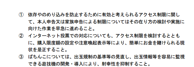 パチンコメーカーに関してはまず素直に役比モニタの搭載を受け入れて不正対策を実行し、それでもどうしても管理遊技機を導入したいと言うならばギャンブル依存症の当事者団体の意見を取り入れた顧客管理機能などを搭載した上で、改めて導入を図るべきでしょう。言うまでもなく業界で勝手に作ったものを「ギャンブル依存症対策」の枠組みに強引に押し込むのは百害あって一利なしです。