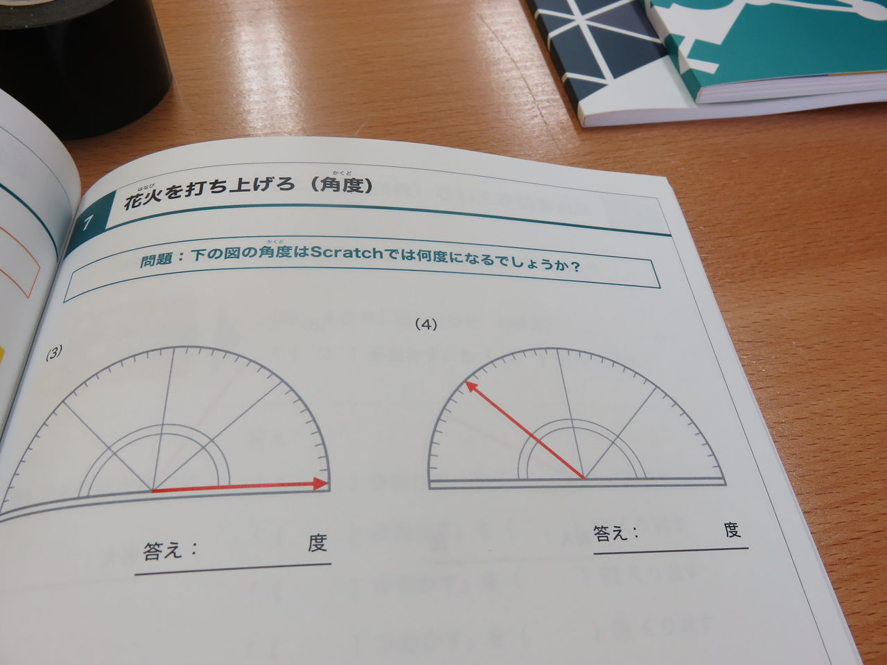 自分が思い描いた花火を上げるためには、座標軸や角度などの概念を理解しなければならない。テックプログレスでは、ゲームと併せて補助教材で分かりやすく解説する。
