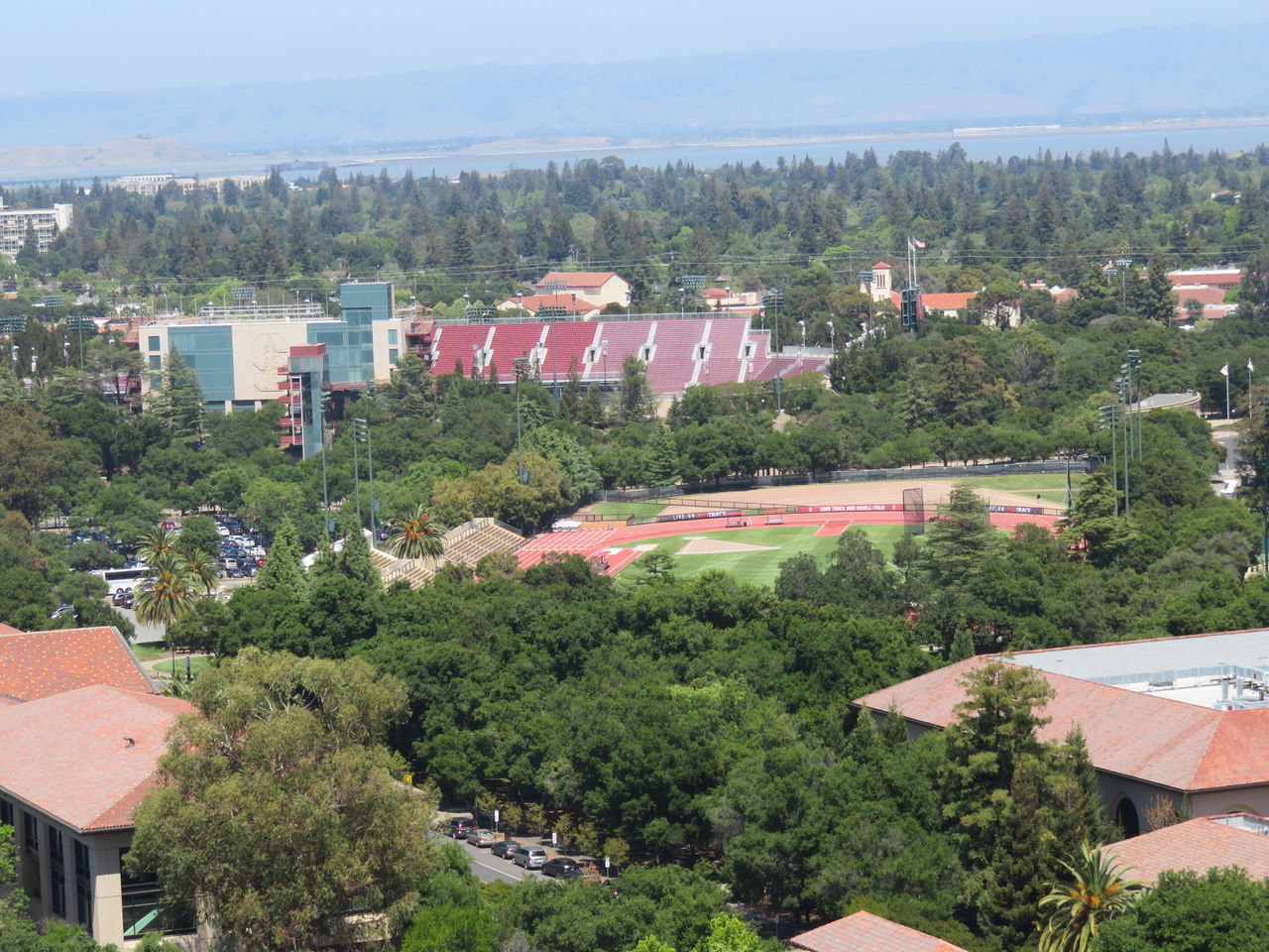 豪華なスタジアム。スタンフォード大学は文武両道。オリンピックでは、在学生・卒業生だけで、日本と同じくらいの数のメダルを取ります。