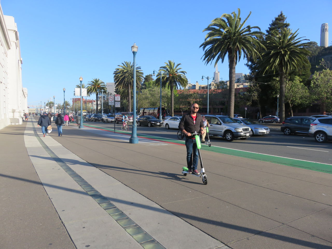 自転車のシェアリングが盛んなサンフランシスコでは、電動キックスケーターのシェアリングも急増している。「Lime Bike」だ。