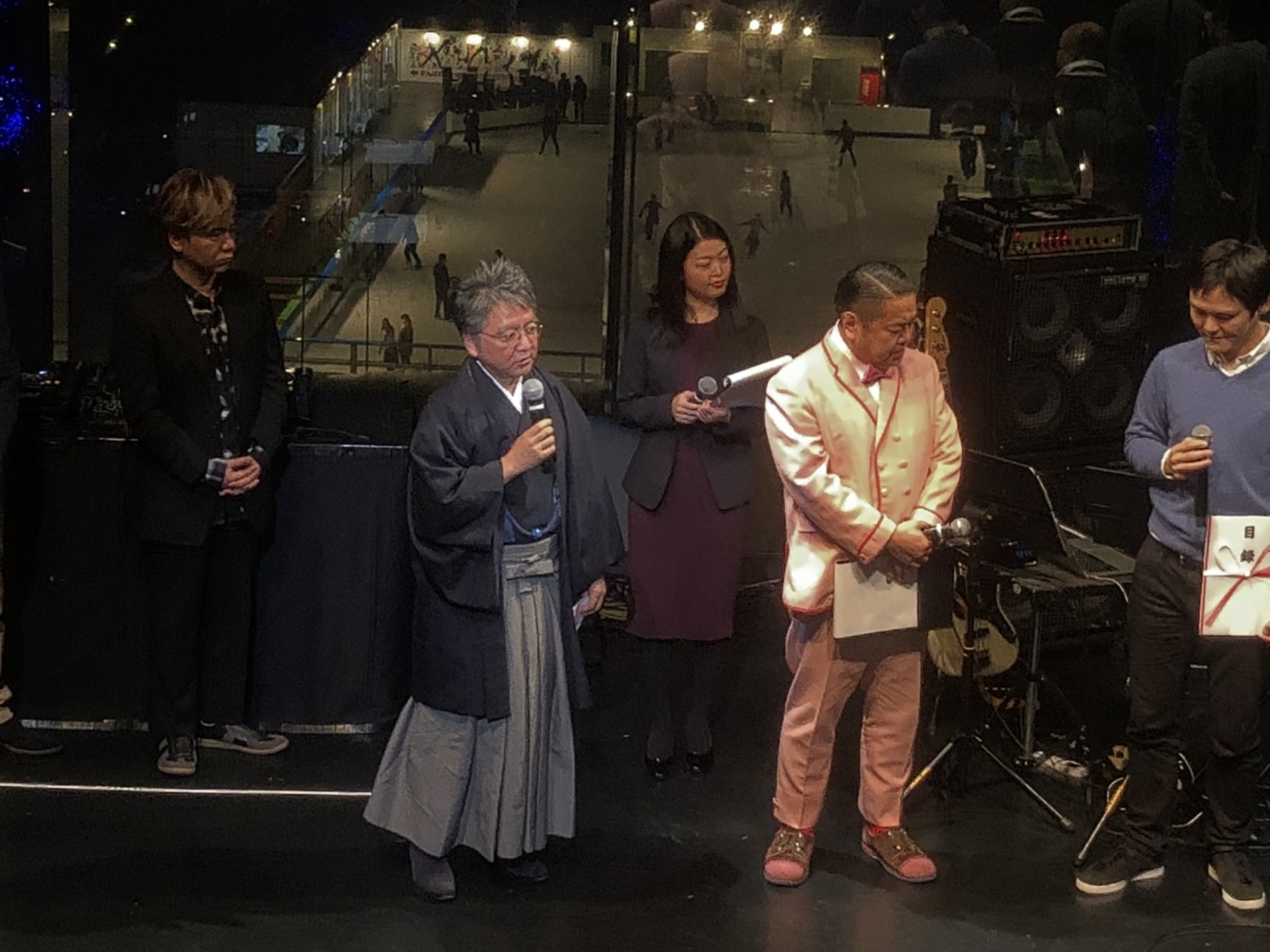 審査員は音楽プロデューサー玉井健二さん、スペースシャワーネットワーク案納俊昭取締役、国際オタクイベント協会(IOEA)佐藤一毅代表、デジタル音楽ジャーナリストジェイ・コウガミさんとぼく。