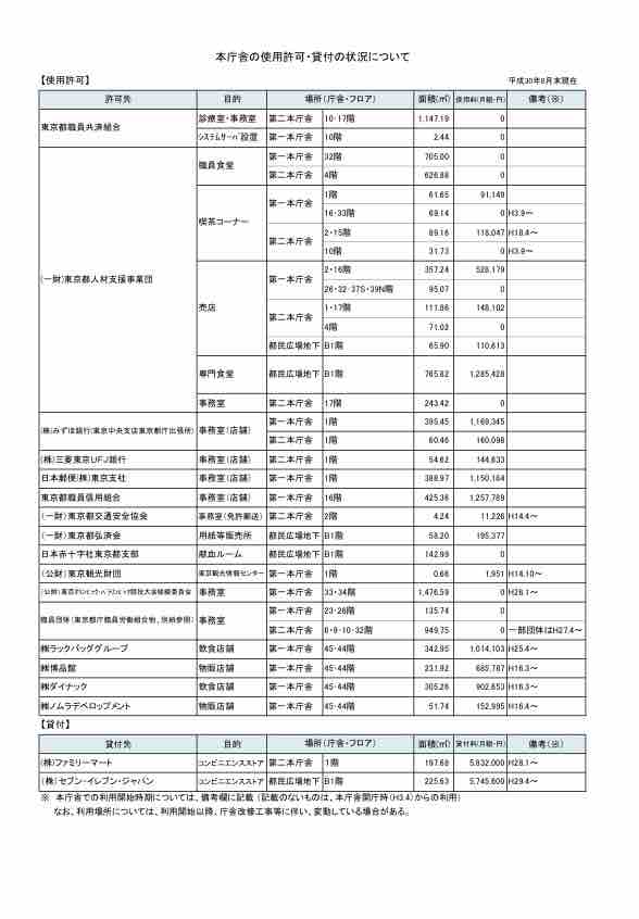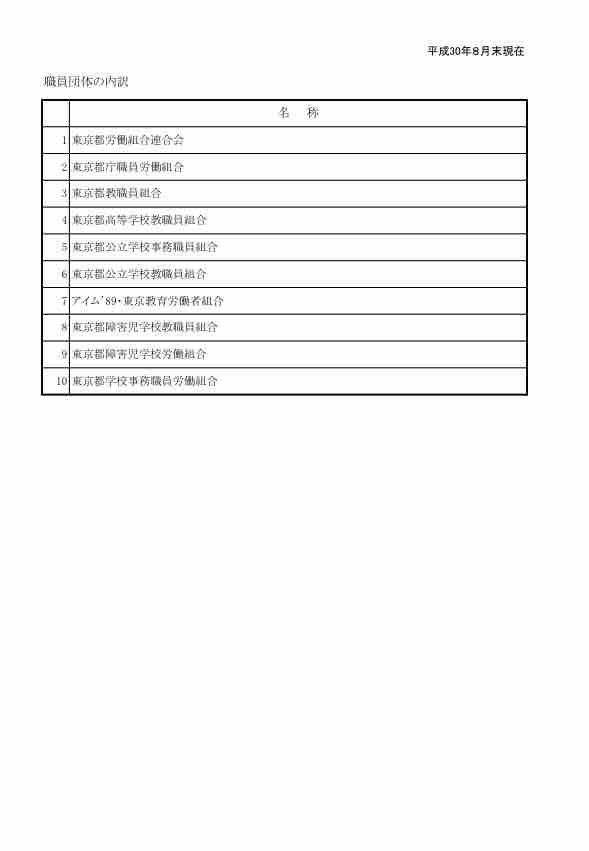 ★2018年8月末都庁舎タダ貸し職員団体の内訳★
