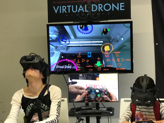 テック展示の一つ、MR(複合現実)でのドローン体験、バーチャルドローン。
