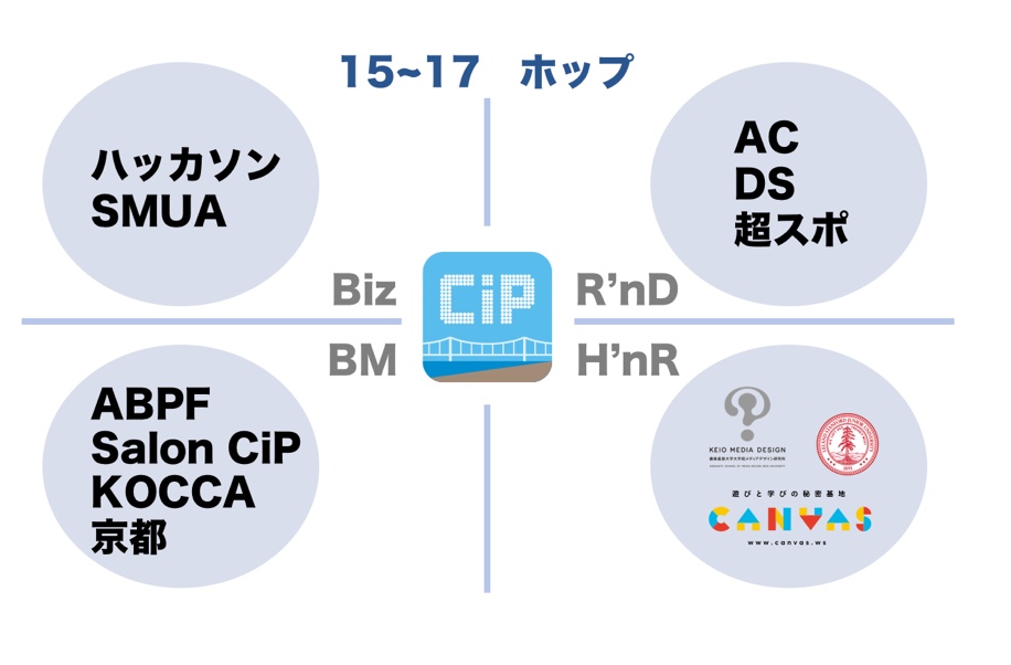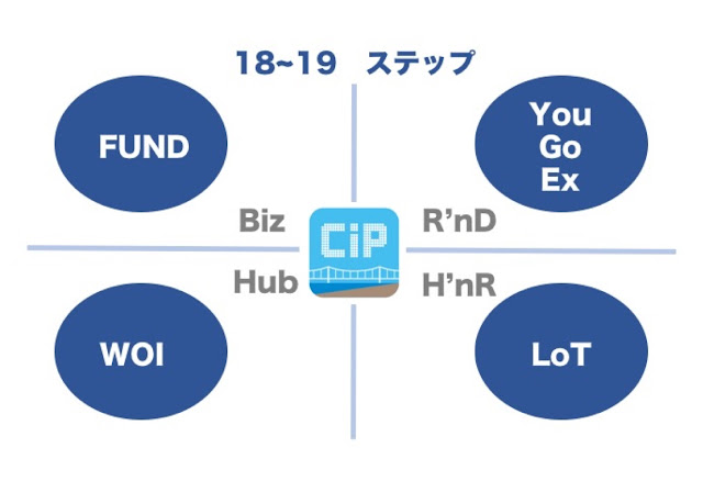 そして2015~17年の「ホップ」2年間を、4つの象限:研究開発、起業支援、ビジネスマッチング、人材育成として成果を上げてきました。