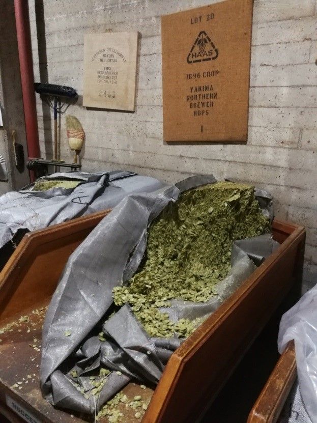 2週間ほどかかる二次発酵を終え、若干残存している酵母を取り除くフィルターを通して、ついにビールが完成します。ビンなどの容器に詰められ、出荷されることになりますが、ビールを詰めた箱がかなり高くしかも斜めに積み上がった光景を目の当たりにし、崩れないのかと心配になりましたが、この積み方で30年間倒れてないので全く問題ないとのことです。