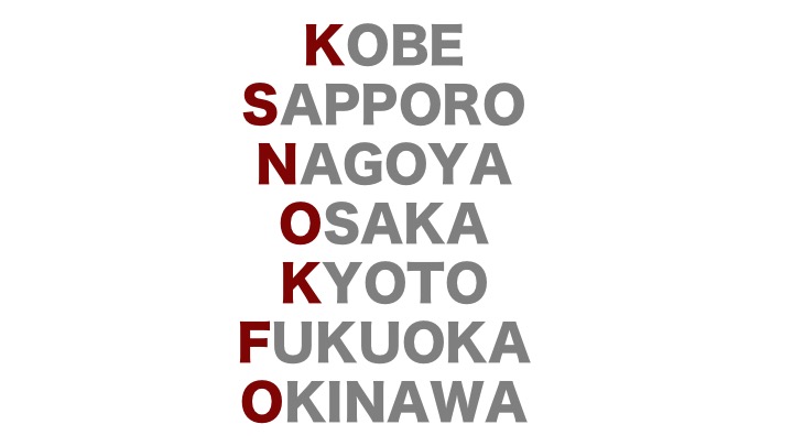 札幌NoMaps、神戸078、福岡 明星和楽。アルファベットと数字と漢字。