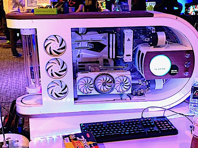 LEDで光る自作のPCを見せに来ている人もたくさんいます。