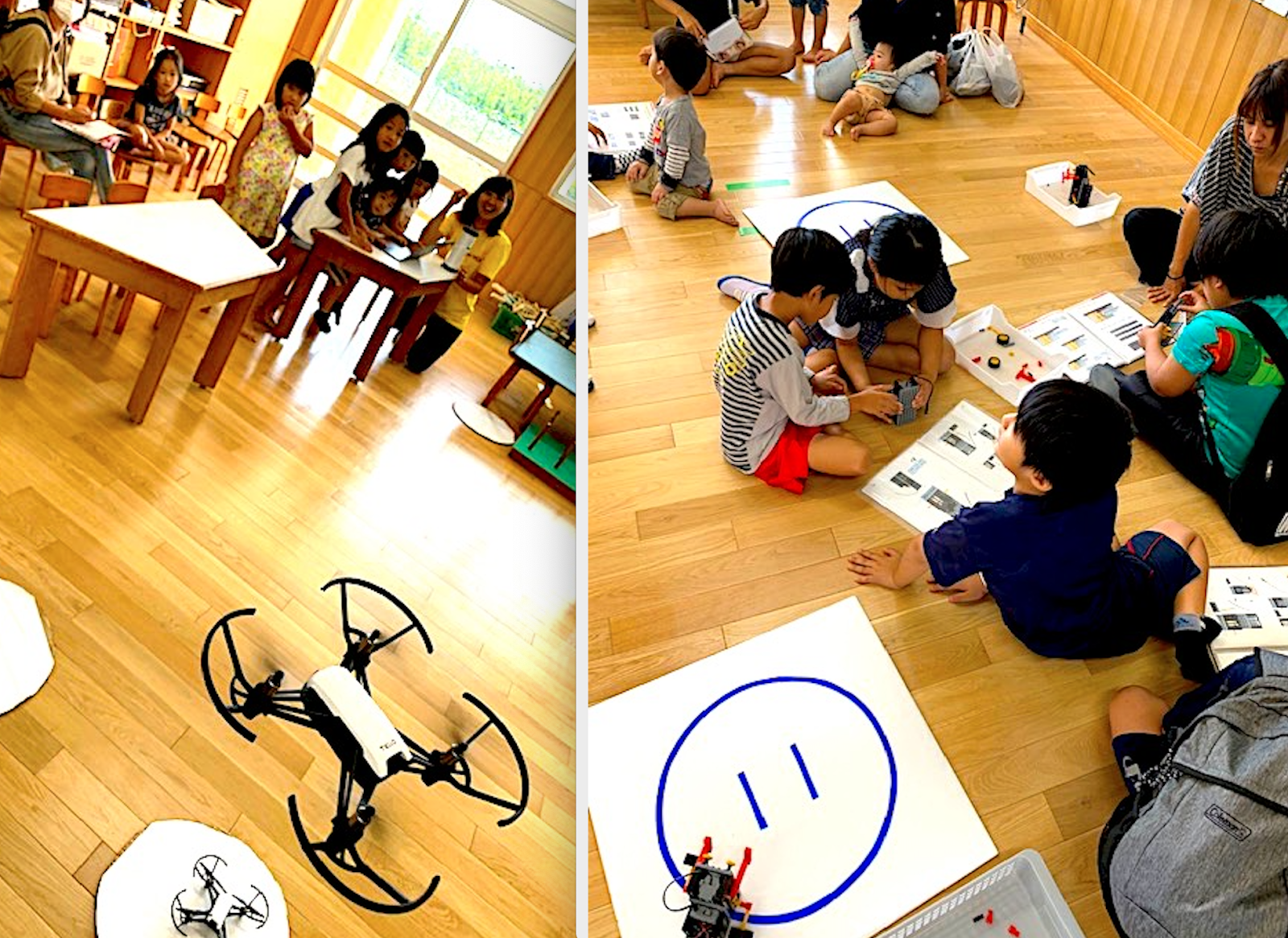 ドローンプログラミング。スクラッチを使い、ドローンの動きをプログラミングしてドローン2台を操縦する。
