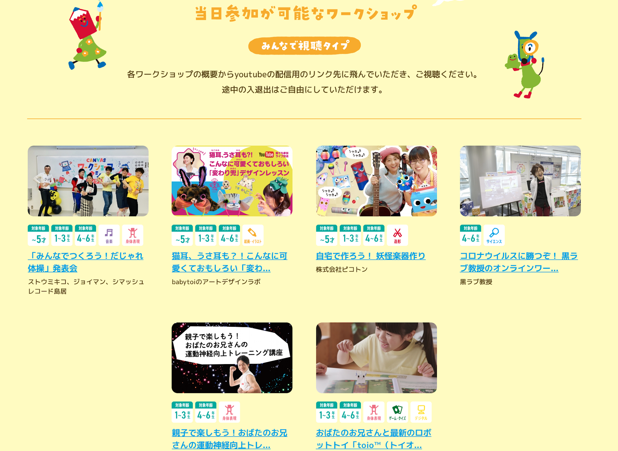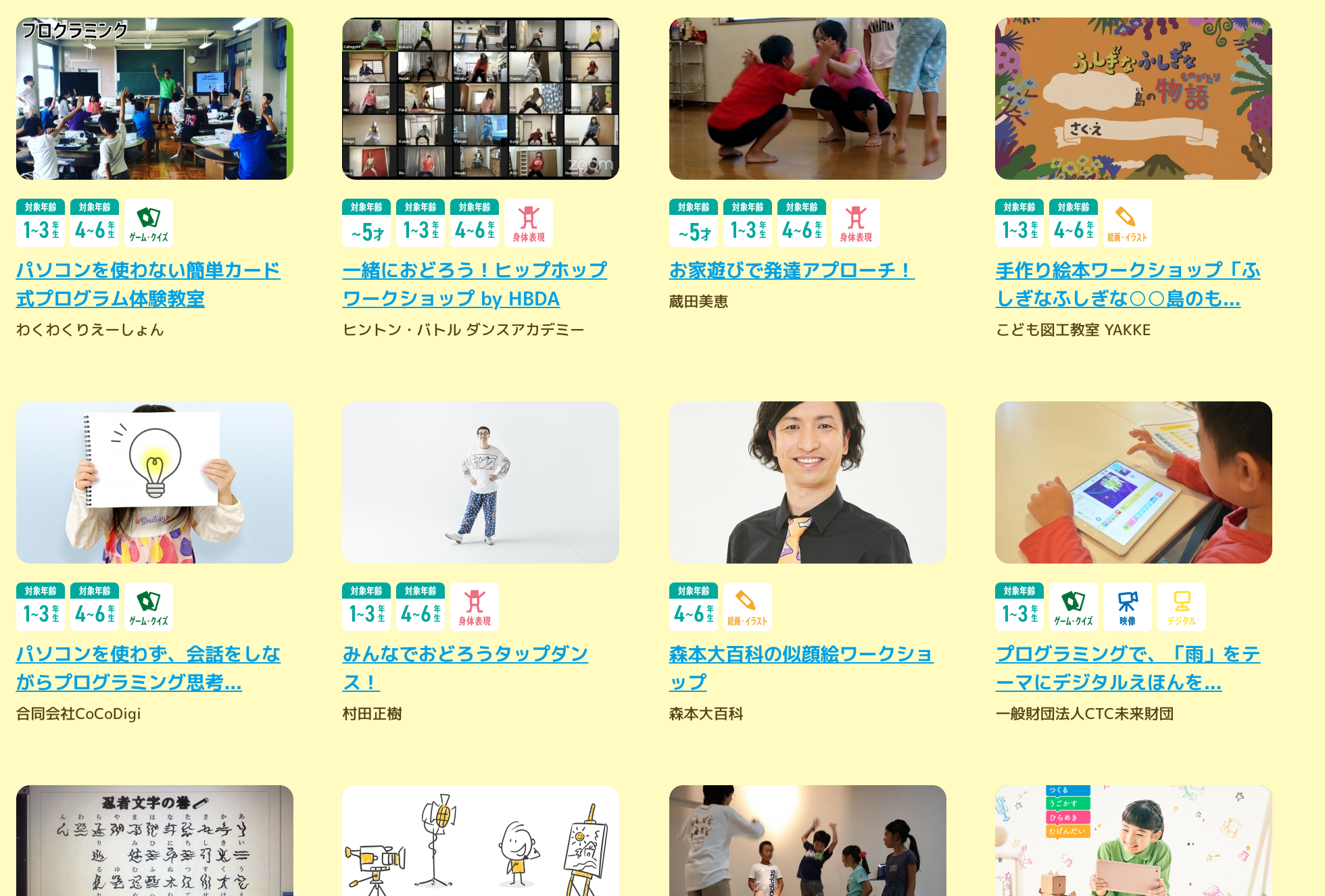 鹿児島、京都、静岡、仙台・・・全国各地からワークショップ出展があったのもオンラインならでは。