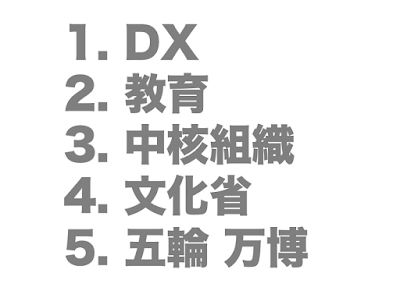最近、経団連もデジタル省、情報経済文化省を提言。デジタルは手段であり、目的は文化。私もそういう強力な、これからの国のかたちを代表する省の設立に賛成する。核は文化なので、名前は文化省。
