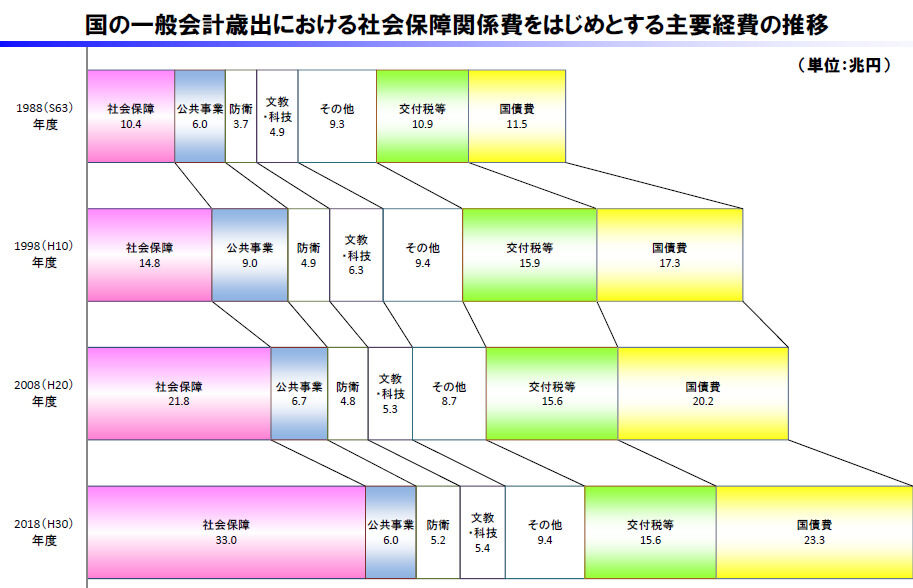 単にバラマキの対象が高齢者の社会保障に偏っているから、教育とか生活保護とか現役世代向けの予算がゴリゴリ削られているだけの話です。