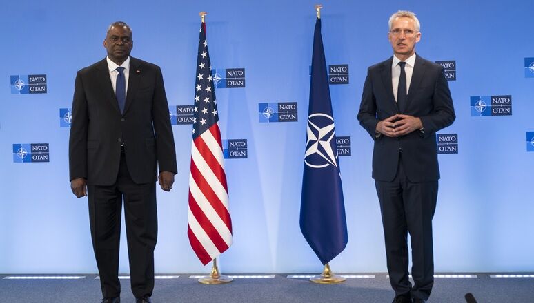 ストルテンブルグ事務総長とロイド・オースティン米国防長官(2022年6月16日、ブリュッセルでの会合で、NATO公式サイトから)