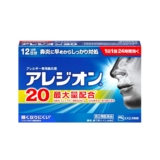 こちらも定番『エピナスチン』。病院ではよく『アレジオン』として処方されますね。これも病院で出るものと同じくエピナスチン20mgを含むものが薬局・通販で買えます。1日1回の内服でいいので、便利な薬ですね。