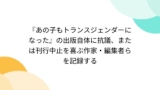 『あの子もトランスジェンダーになった』の出版自体に抗議、または刊行中止を喜ぶ作家・編集者らを記録する