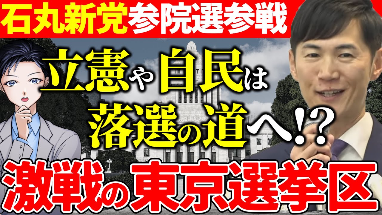 石丸伸二氏率いる「再生の道」が参院選にも本格進出!東京選挙区は定数7をめぐり大乱戦に。自民、立憲、維新の落選危機も浮上し、国民民主の勢いが波乱を呼ぶ。注目の選挙戦を徹底解説!