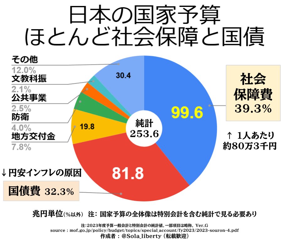 2025年開始で最新データ。原資は新規国債発行のみで対応。他の削減案なし。代替の収入増案もなし。ハイパーインフレは加速度的にインフレ率が上がることを指す
