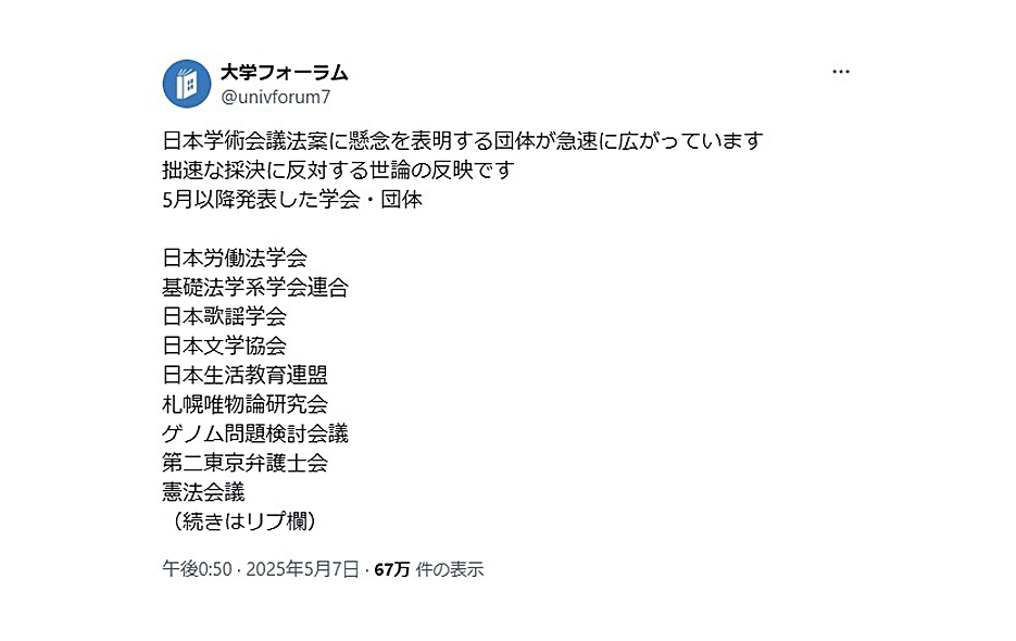 日本学術会議法案に懸念を表明する団体が急速に広がっています