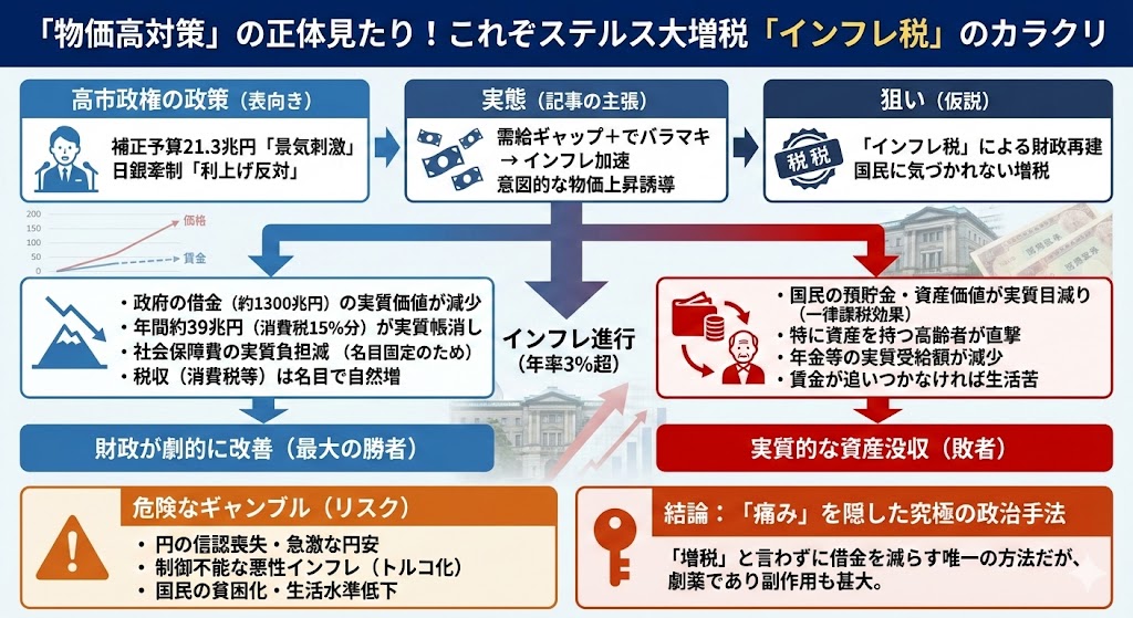 高市政権の補正予算は「物価高対策」ではなく、21兆円の需要拡大で物価を上げ、今の3%を超えるインフレ率を維持して税収を上げ、実質債務を減らすインフレ税である。