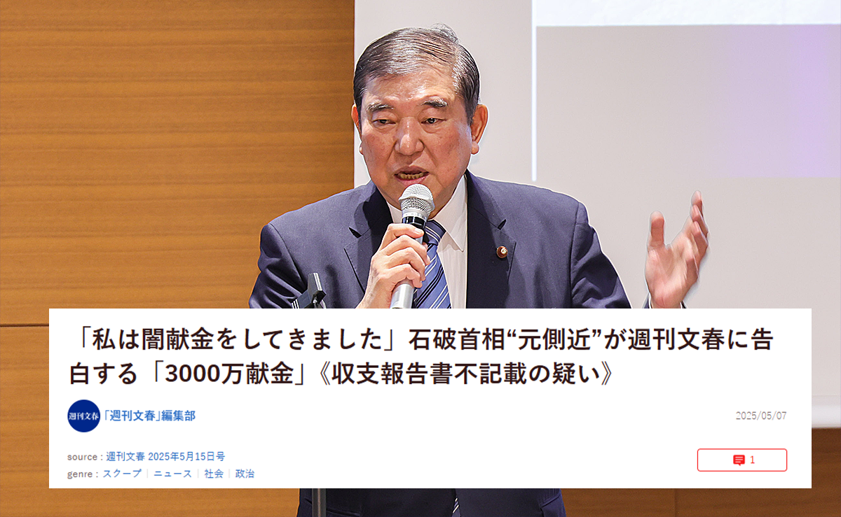週刊文春が石破茂の闇献金3000万円、裏金3000万円と報じ、5月12日にこの件の自称当事者とかいう方の会見が国会で行われました。