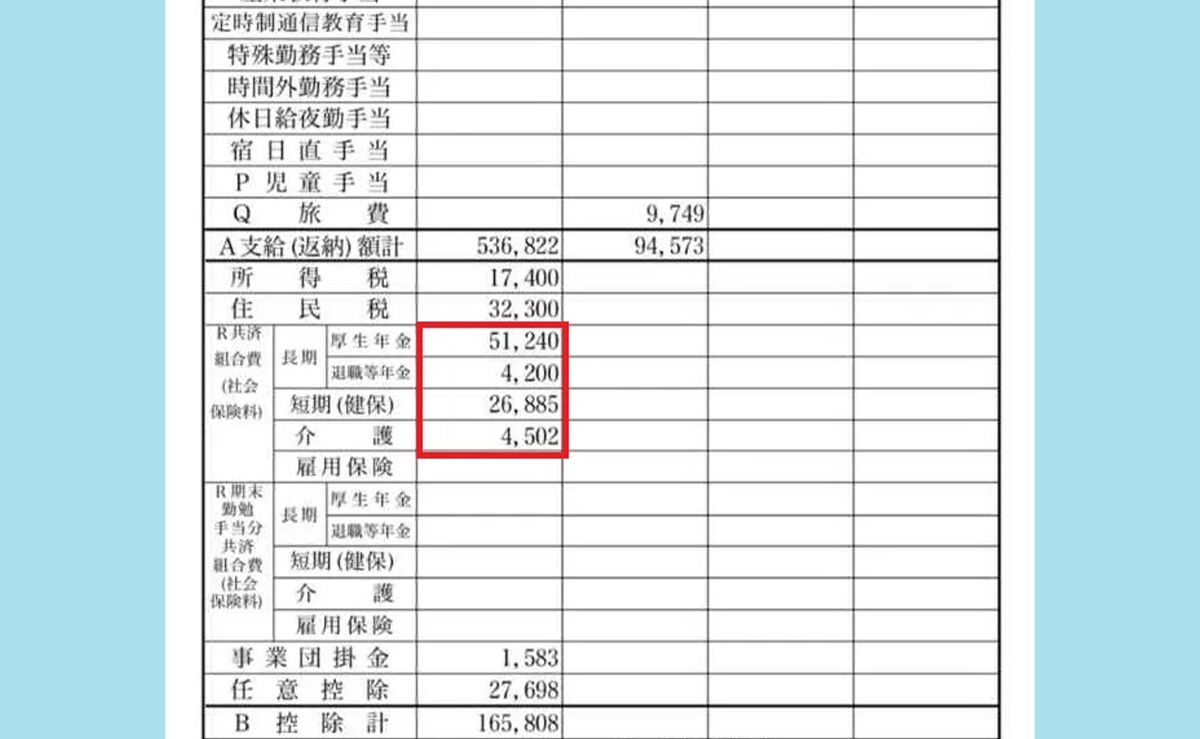 本日は41歳、東京都の教育公務員(教師)の方から給与明細をいただきました。