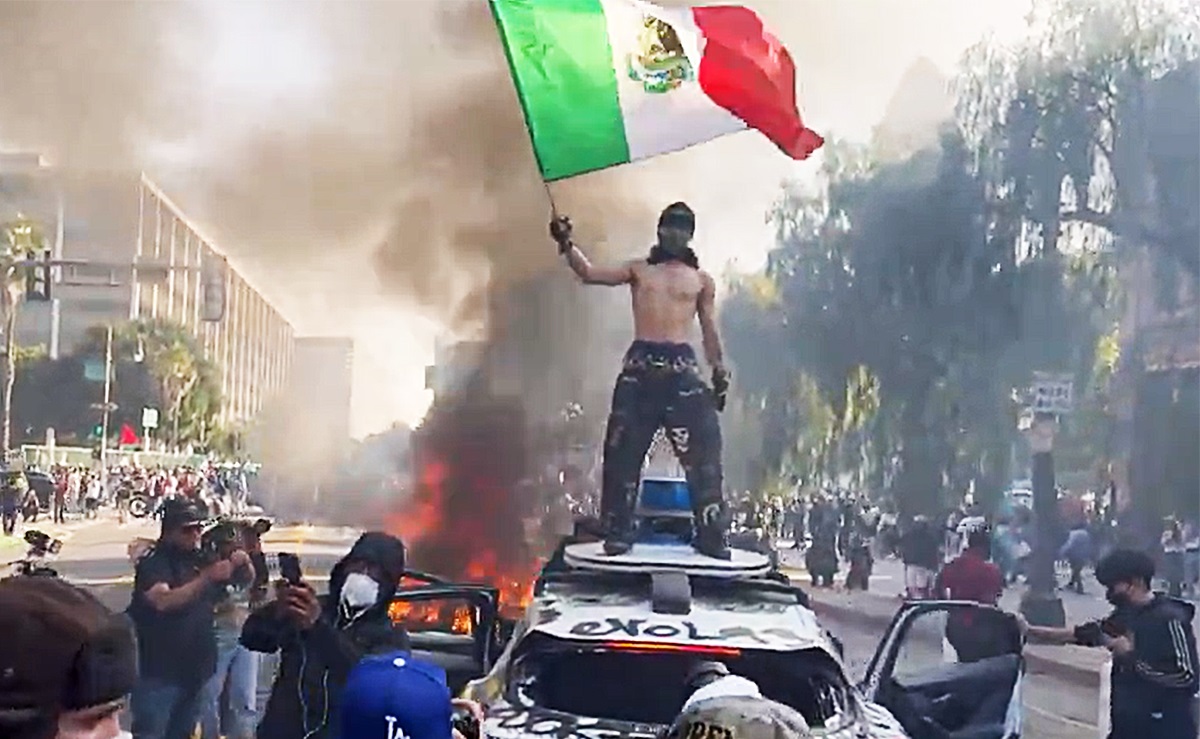 アメリカのロサンゼルスでアメリカの移民局が不法移民を強制送還しようとしたところ、大規模な反対運動が起きて暴動状態になってしまいました。