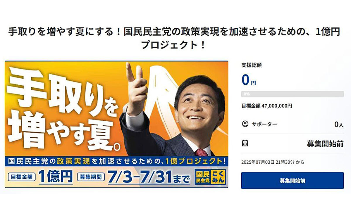 【手取りを増やす夏にする!国民民主党の政策実現を加速させるための、1億円プロジェクト!】